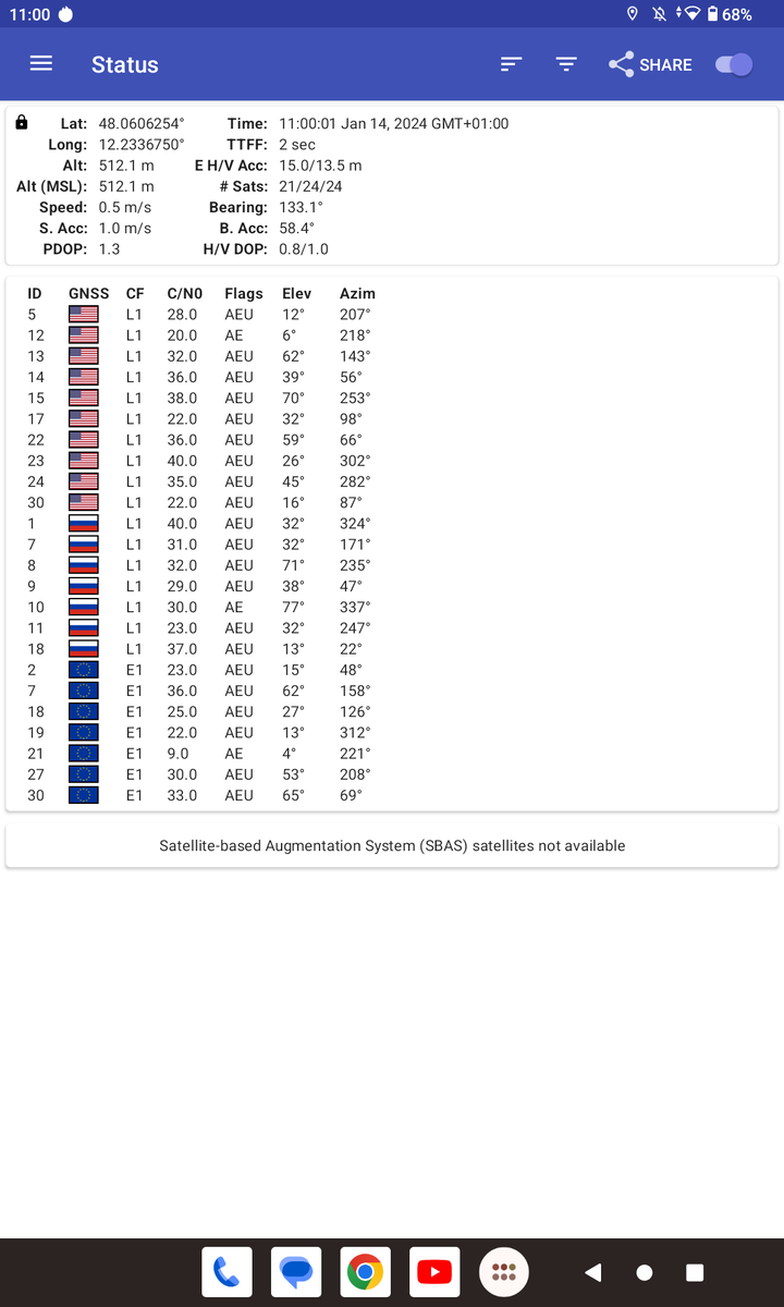 Das Teclast T60 bietet auch ein Ortungsmodul, welches mit allen großen Satellitennetzwerken zusammenarbeitet. Tritt man ins Freie und wartet einige Sekunden, so erkennt das System genügend Satelliten, um auf gute 3 Meter genau lokalisiert zu werden. Andere Geräte verbinden sich allerdings an der gleichen Stelle zum selben Zeitpunkt mit deutlich mehr Satelliten.