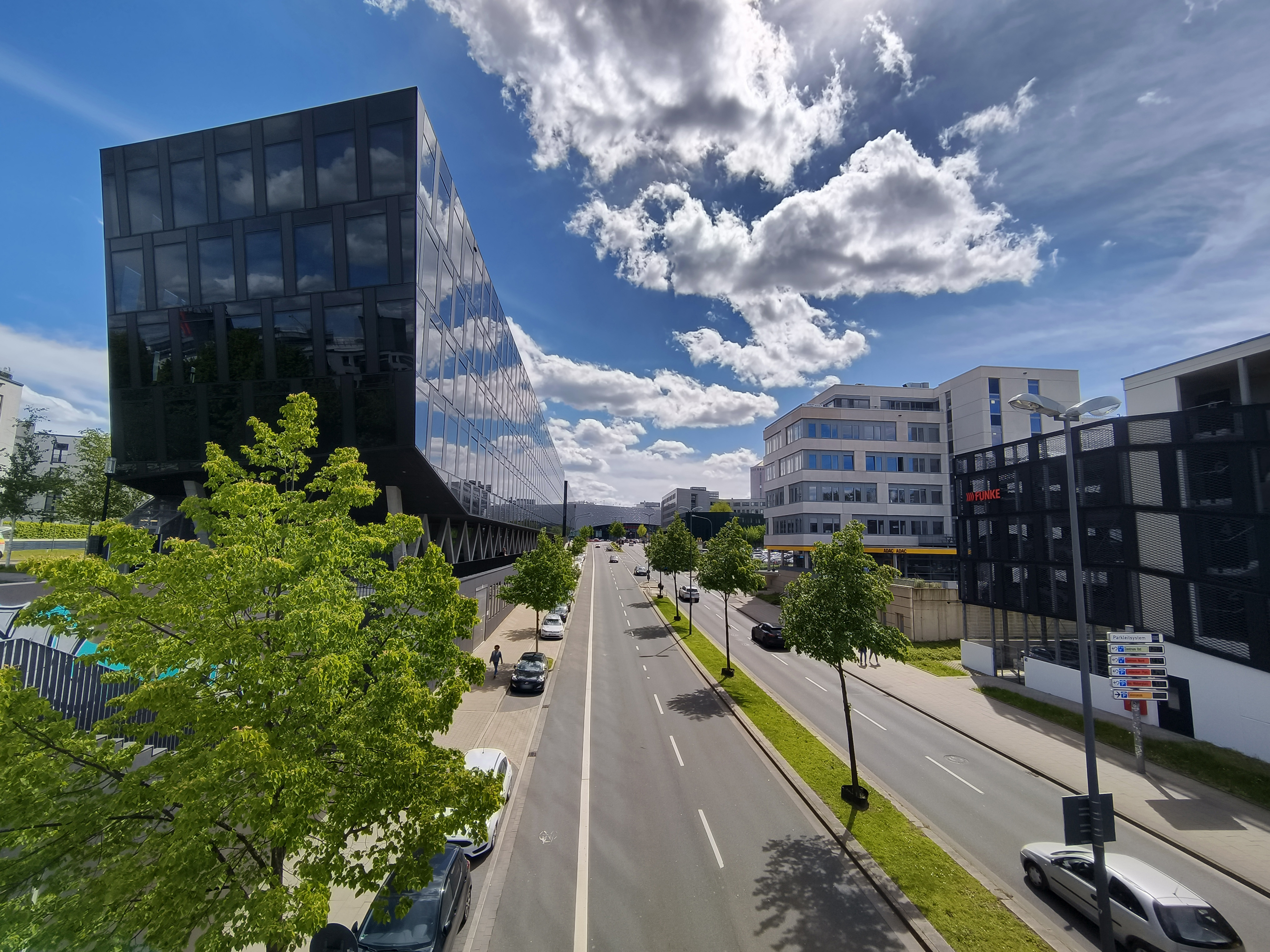 In der Realität überzeugen die Bilder und Videos vor allem bei viel Licht. Die Aufnahmen haben einen guten Dynamikumfang und sind schön scharf. Zudem kann die Ultraweitwinkelkamera für Makro-Aufnahmen genutzt werden, die Ergebnisse überzeugen. Auch die Zoom-Linse liefert gute Ergebnisse, in Kombination mit dem Digital-Zoom nimmt die Schärfe aber deutlich ab.