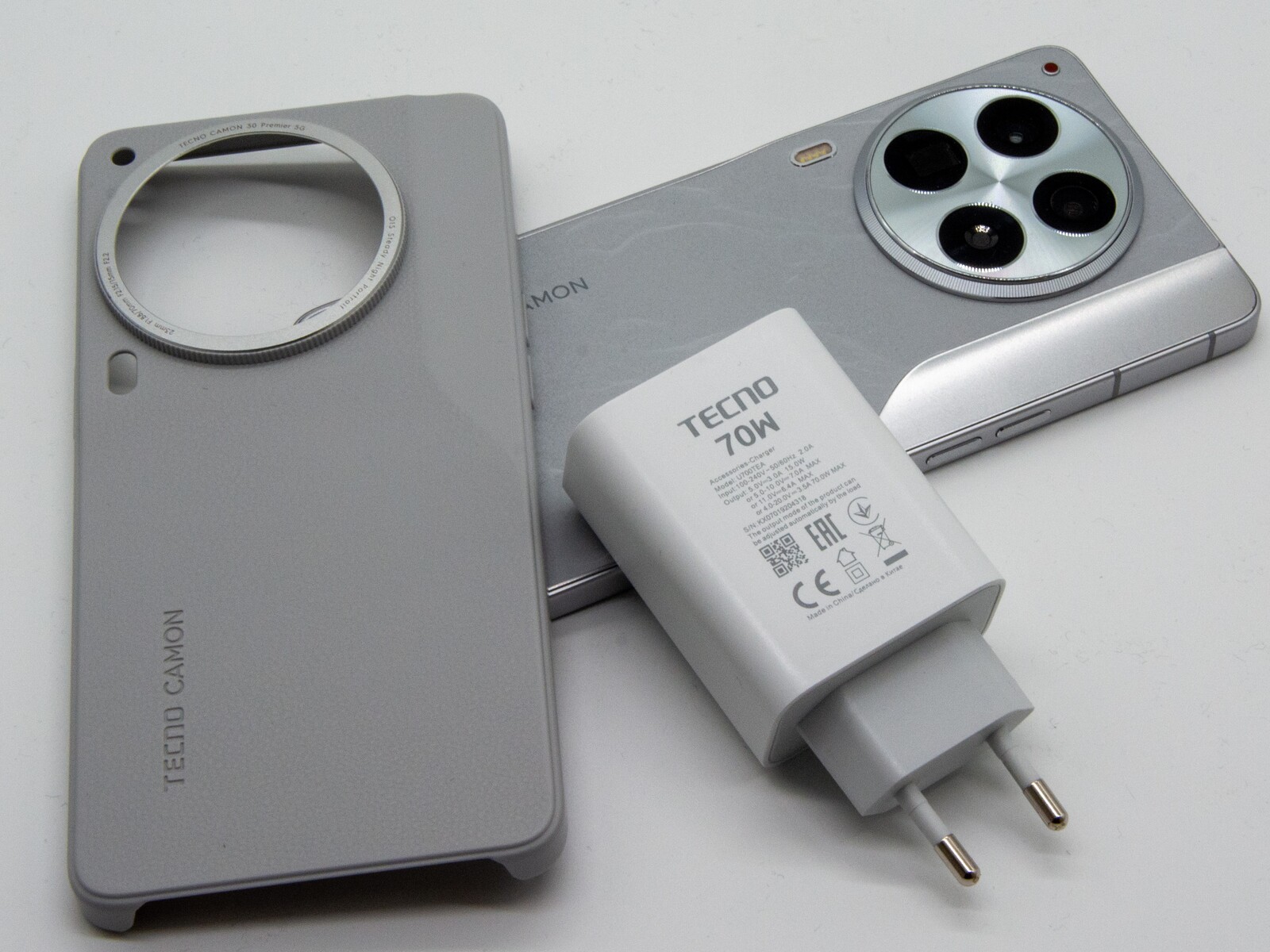 Der Lieferumfang des Camon 30 Premier 5G ist groß. Ab Werk ist auf dem Display eine Schutzfolie aufgebracht. In der Box liegen eine weitere, dickere Folie, ein gut verarbeitetes Case und ein 70 Watt Netzteil samt passendem Kabel.