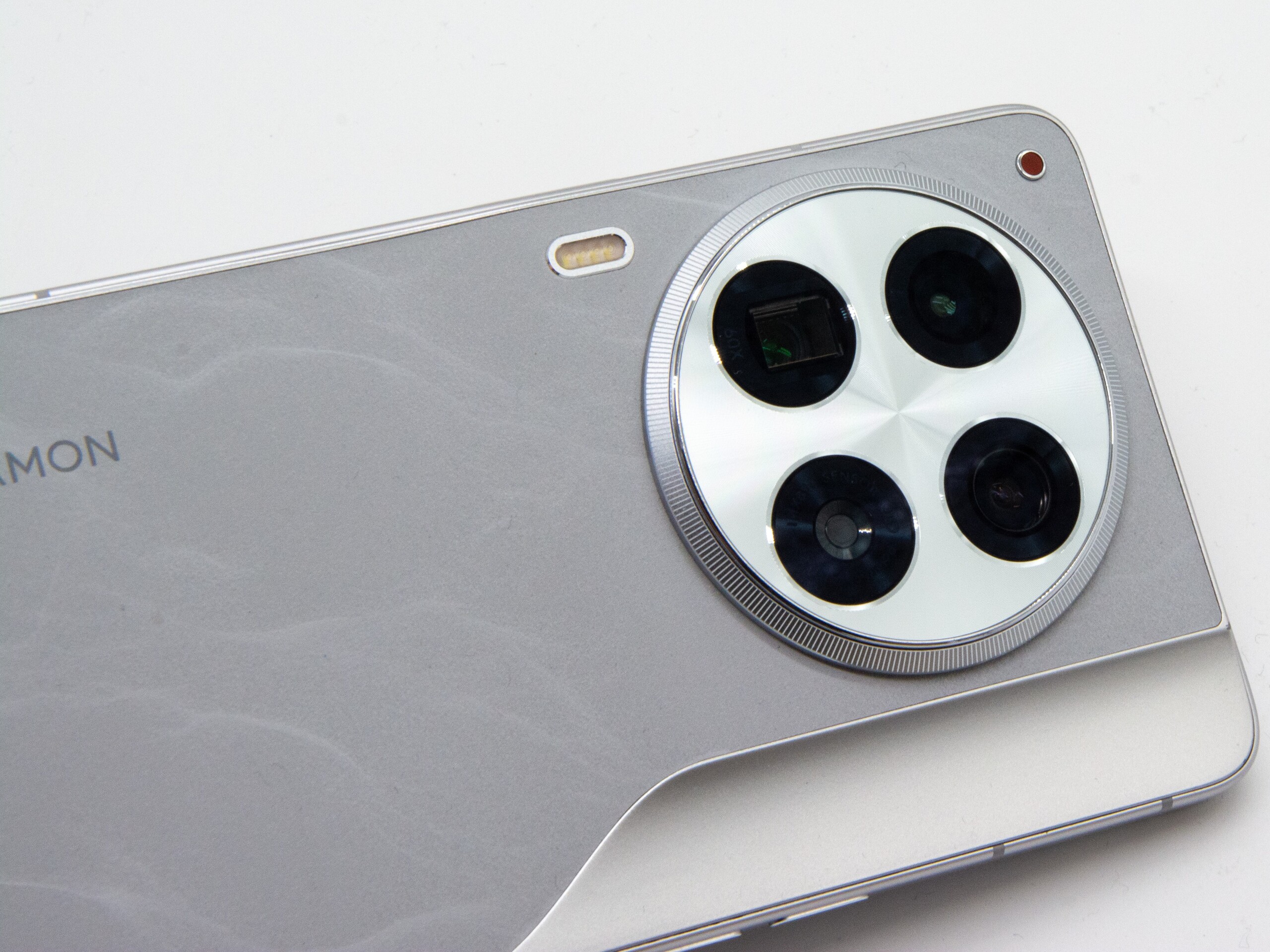 Tecno legt den Schwerpunkt bei der Camon-Serie auf die Kamera. Das wird beim großflächigen Design der Rückseite deutlich, aber auch an den insgesamt vier verbauten Sensoren mit einer Auflösung von jeweils 50 MPix. In der Hauptkamera kommt der Sony IMX890 zum Einsatz.