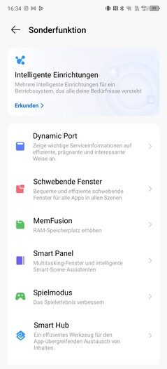 Weitere Besonderheiten sind der "Dynamic Port", Tecnos Interpretation von Apples Dynamic Island. In dem Bereich um die Frontkamera können verschiedene Animationen eingeblendet werden. Außerdem gibt es schwebende Fenster und ein "Smart Panel". Das kann jederzeit ausgeklappt werden und bietet Zugriff auf weitere Apps, die vom System als in der Situation nützlich vorgeschlagen werden.