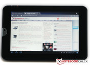 Ein niedriger Schwarzwert von 0.28 cd/m² sorgt für einen guten Kontrast von 807:1. Allerdings kämpft das Display mit Fingerabdrücken. Natürlich lassen sich diese bei einem Touchscreen nicht vermeiden, doch im Vergleich zum iPad wirkt das Display des Toshiba AT100 deutlich anfälliger.