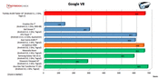 Auch beim Google V8 Benchmark kann das Tablet wieder vorne im Feld mitmischen. Mit 665 Punkten schneidet es nur geringfügig schlechter als das Asus Eee Tab Transformer TF101 (Android 3.0, Tegra 250) ab.