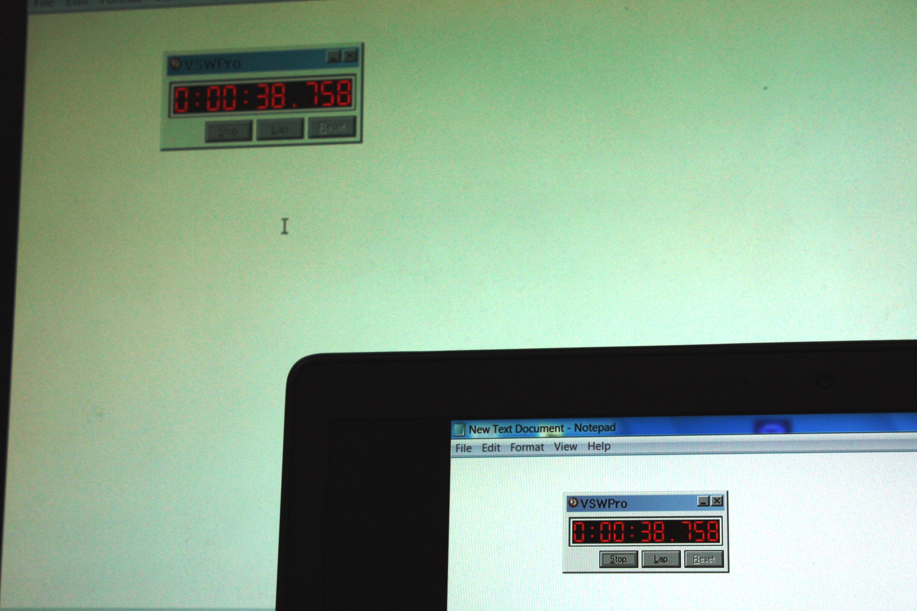 Bei älteren Docking-Stationen wie der Fujitsu PR08 oder der Lenovo 0A33970 kam es zwischen dem lokalen und externen Bild zu einer Verzögerung von rund 30 ms. Bei der Dynadock ist die Verzögerung bei wenig Aktivität auf dem Bildschirm beinahe zu vernachlässigen. Unsere Kamera (geringe Verschlusszeit) zeigt zwischen den beiden Bildschirm-Timern praktisch keinen Unterschied an.