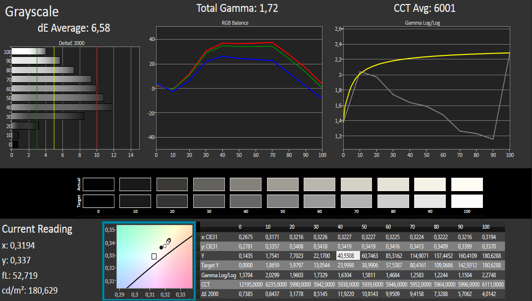 ΔE Greyscale Calman: 6.58 | ∀{0.09-98 Ø5}