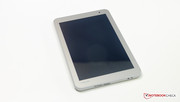 Das Toshiba Encore 2 ist spürbar dünner geworden, weshalb es nun auf dem Level von Android basierten Tablets liegt. Ein champagnerfarbenes Gehäuse gibt dem Gerät ein elegantes Aussehen, und die Tasten wirken solide und gut eingepasst, genauso wie das Gehäuse. Der MicroSD-Kartenleser ist ungeschützt, und es gibt im Gegensatz zum Vorgänger keinen Micro-HDMI-Anschluss. Auf der Rückseite befindet sich eine 5-MP-Kamera mit Autofokus, auf der Vorderseite ein Sensor mit 2 MP. Auch das Gewicht wurde reduziert: Offiziell wiegt das Tablet 390 Gramm, aber laut unseren Messungen ist das Gewicht sogar geringer. Unter den 8-Zoll-Windows-Tablets ist lediglich das Lenovo Miix 2 etwas leichter. Zum Vergleich: Ein iPad Air wiegt 479 Gramm, ist dafür aber auch deutlich größer.