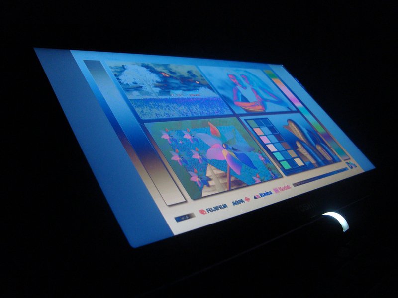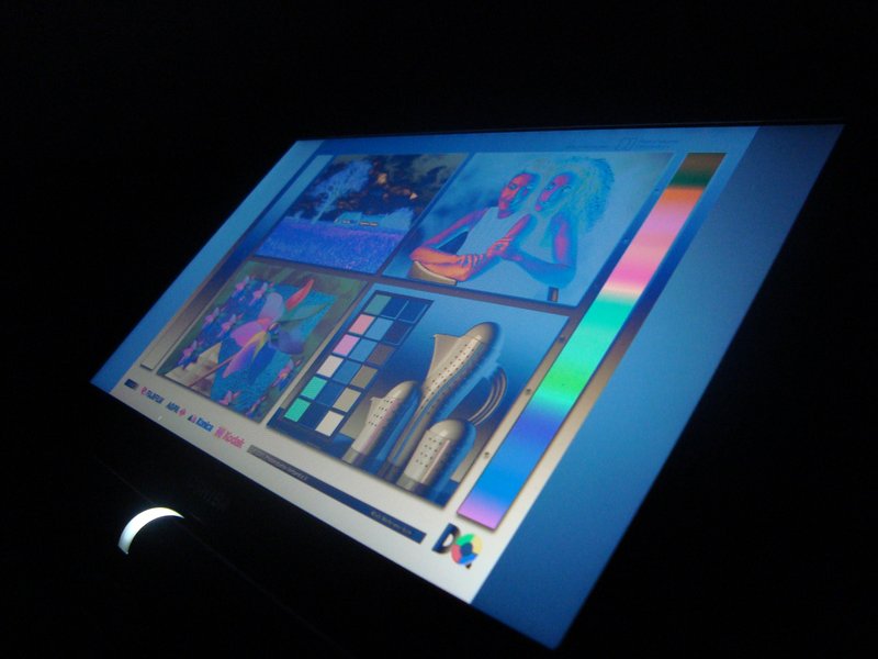Dank des spiegelnden TruBrite Displays sind die dargestellten Farben allerdings satt und kräftig. Hinsichtlich der Blickwinkelstabilität ist vor allem der Blickwinkel in der horizontalen Ebene recht großzügig. Der vertikale Einblickwinkel ist hingegen nicht so berauschend. Regelmäßiges nachjustieren des Bildschirmes ist nötig, um Verdunkelungen und Farbveränderungen zu vermeiden, nachdem man beispielsweise die Sitzposition verändert hat. Allerdings ist der maximale Öffnungswinkel des Displays recht klein bemessen.
