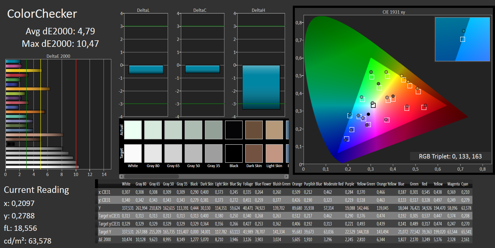ΔE ColorChecker Calman: 4.79 | ∀{0.5-29.43 Ø4.78}