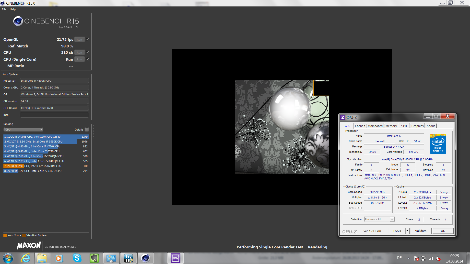 Die Vergleich-Notebooks setzen alle auf Intels U-Varianten, also auf einen TDP von nur 15 Watt. Die Cinebench-Scores der Konkurrenten liegen daher 2 bis 25 % hinter dem Testgerät. Das direkte Gegenstück Core i7 4600U rechnet im Single-Core-Test allerdings nur 2 bis 5 % langsamer (ThinkPad T440s bzw. EliteBook 840 G1). Ein Grund dafür wird die geringe Turbo-Ausnutzung des R30 sein. Den größten Vorsprung arbeitet sich der Multi-Test für unser R30 heraus, 12 % gegenüber ThinkPad und EliteBook. Performance-Geeks kommen also mit der kleinen Einschränkung auf ihre Kosten, was macht die Gesamtleistung daraus?