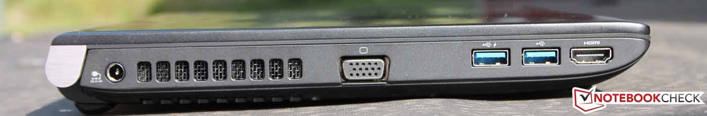 Toshiba zieht fast alle Register, die ein kleines Gehäuse bieten kann. Drei USB-Ports sind an Bord, davon alle als USB 3.0 ausgeführt. Die SimCard für die LTE-Verbindung wird klassisch unter dem Akku eingelegt und die Smartcard findet unter dem DVD-Laufwerk seinen Platz. Das optische Laufwerk ist übrigens keine Selbstverständlichkeit: Alle im Intro genannten Konkurrenten haben zu Gunsten der Bauhöhe und der Chassis-Stabilität darauf verzichtet. Leider verbaut Toshiba HMDI statt des im Business-Umfeld gebräuchlicheren DisplayPorts. Die Anschlüsse sind, bis auf HDMI, praxisfreundlich an den Seiten angelegt. Die Möglichkeit einer spezifischen Docking-Station macht das Fehlen von rückseitigen Anschlüssen (hier Entnahme des Akkus) erträglich.