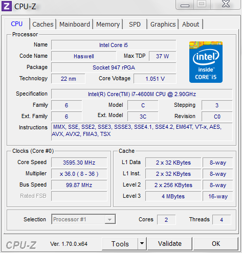 Die Kernkomponenten des Portege R30 sind ein Core i7 4600M (2,9 GHz) mit der integrierten HD Graphics 4600 und die 256-GB-SSD (Samsung PM851 Series MZMTE256HMHP). Die CPU kennen wir aus Workstations (Fujitsu Celsius H730) oder aus starken Business-Laptops (ThinkPad T440p). Im Gegensatz zu den oft verwendeten Low-Voltage-CPUs (Haswell 15 Watt) kann der i7 4600M als Standard-Voltage-Modell 37 Watt „verbrennen“. Das macht den R30 zu einem HighEnd-Performance-Boliden.