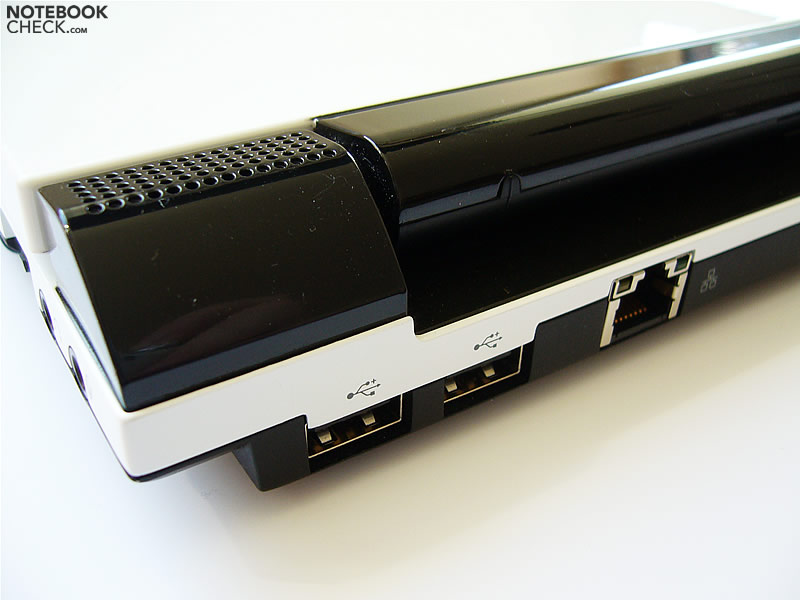 Leider bietet das Portégé R400 nur sehr wenig Schnittstellen, was für einen Tablet PC üblich ist. Man findet nur zwei USB ports unmittelbar nebeneinander.