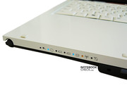 Abgesehen von den üblichen Bedienelementen, stehen in der Zierleiste einige Tasten zum Steuern des Tablet PCs zur Verfügung. Der benachbarte Stromschalter ist etwas zu klein und muss fest gedrückt werden.