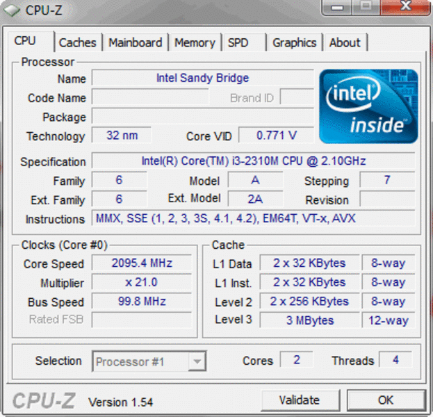 Toshibas 13.3-Zoller ist mit einem Intel Core i3-2310M (2 x 2.1 GHz) ausgerüstet. Die 2-Kern-CPU beherrscht kein Turbo Boost, aber Hyperthreading (auf 4 Threads rechnen). Der CPU-Stromverbrauch liegt nach TDP bei 35 Watt. Davon benötigen die zwei Rechenkerne 25 Watt. 10 Watt sind für die integrierte Intel HD 3000 Grafiklösung und den internen DDR3-Speicherkontroller.