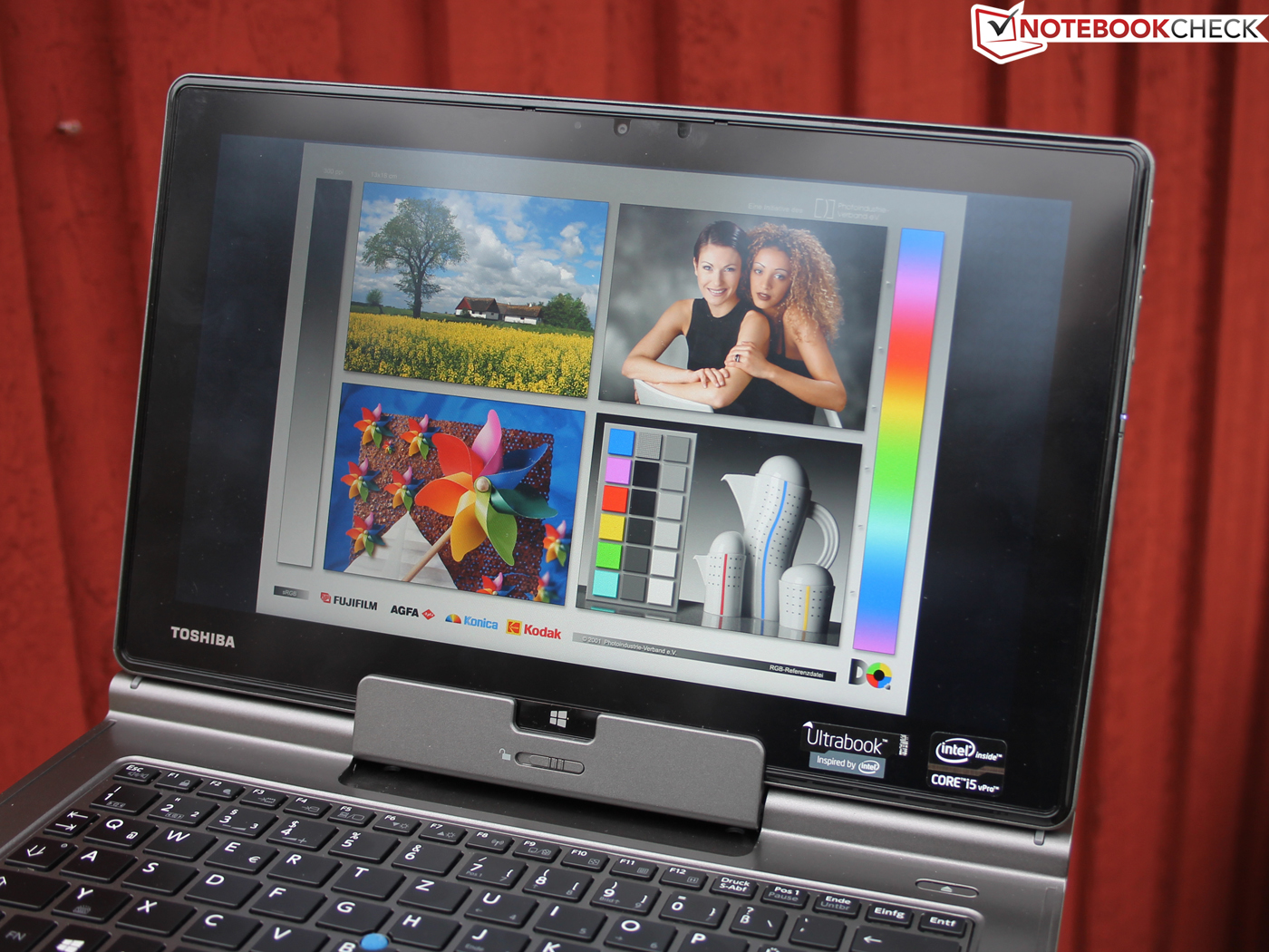 Was hat uns zu dem Titel „Hinkebein“ hinreißen lassen? Nun, das Toshiba Portégé Z10t-A-10M ist beinahe das perfekte Windows Convertible für den professionellen Einsatz. VGA, Ethernet und USB sind für den mobilen als auch stationären Einsatz an Bord, und die allgemeine Anwendungsleistung kann mit den meisten Subnotebooks mithalten. Die Eingabegeräte der Docking-Lösung (Tastatur, Pointer, Touchpad) ergänzen das Touchpanel und die beiden Digitizer-Stifte. Die Finger hinterlassen auf dem entspiegelten FHD-Panel kaum Abdrücke, und die mobile Konnektivität ist mit LTE-Breitbandmodem gegeben. Bis jetzt nur Gutes, wo ist der Haken?