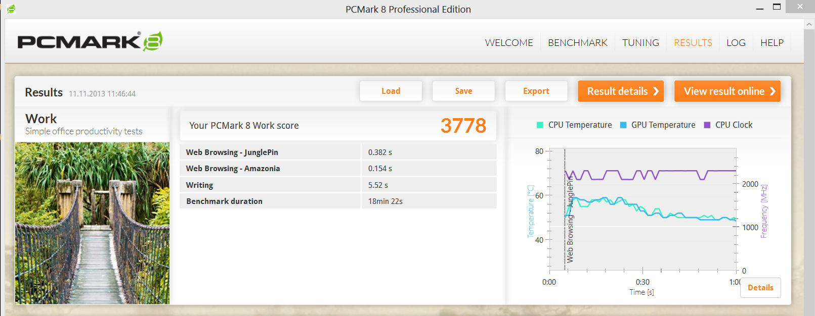 | PCMark 8 Work Score Accelerated | 3778 Punkte | |