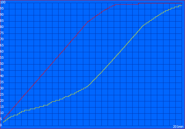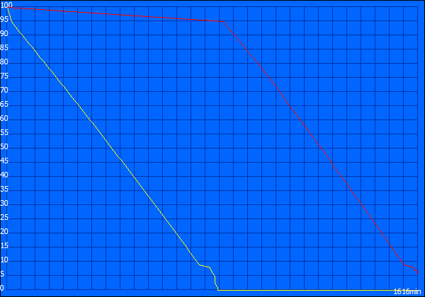 Neben einem 36-Wh-Akku im Tablet integriert das Z20t noch einen zweiten Energiespeicher, der ebenfalls 36 Wh fasst und sich im Inneren des Tastatur-Docks versteckt. Insgesamt stehen dem 12-Zöller somit satte 72 Wh zur Verfügung, was für hervorragende Laufzeiten zwischen knapp 6 Stunden (Volllast, maximale Helligkeit) und 27 Stunden (Leerlauf, minimale Helligkeit) sorgt. In der Praxis können Anwender mit rund 12 bis 13 Stunden Internet-Browsing oder Videowiedergabe bei mittlerer Bildhelligkeit (150 cd/m²) rechnen. Betreibt man das Gerät ohne Dock, halbieren sich die genannten Werte in etwa.