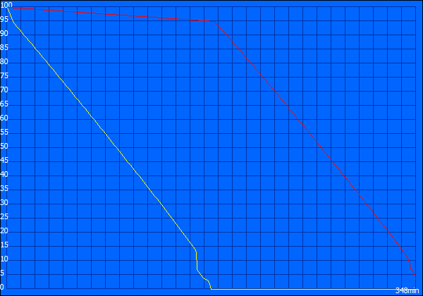 Im Akkubetrieb wird der Verbrauch generell auf 4,5 Watt gedrosselt und überschreitet diesen Wert auch kurzzeitig nicht. Dadurch gehen die Taktraten auf etwa 2,0 GHz (Single-Threading) respektive 1,5 GHz (Multi-Threading) zurück, was entsprechende Auswirkungen auf die Performance nach sich zieht.