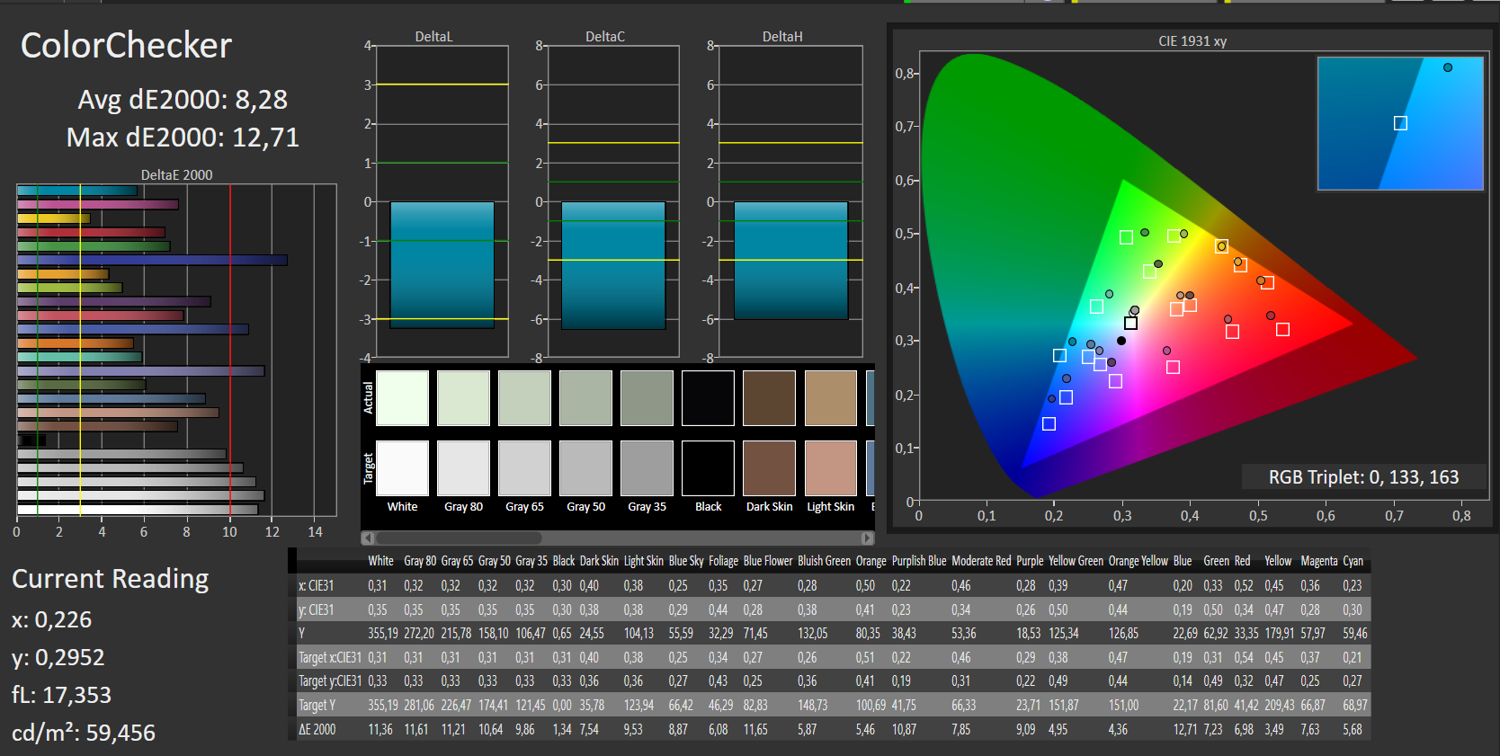 ΔE ColorChecker Calman: 8.28 | ∀{0.5-29.43 Ø4.78}