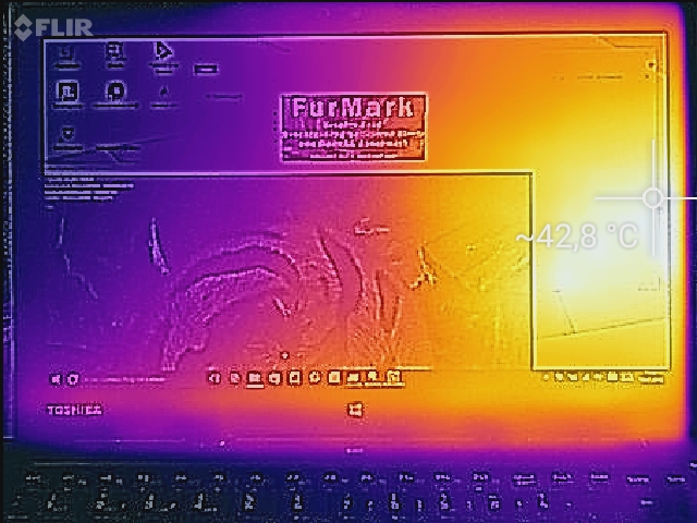 (±) Auf der Unterseite messen wir eine maximalen Wert von 43.2 °C (im Vergleich zum Durchschnitt von 36.8 °C).