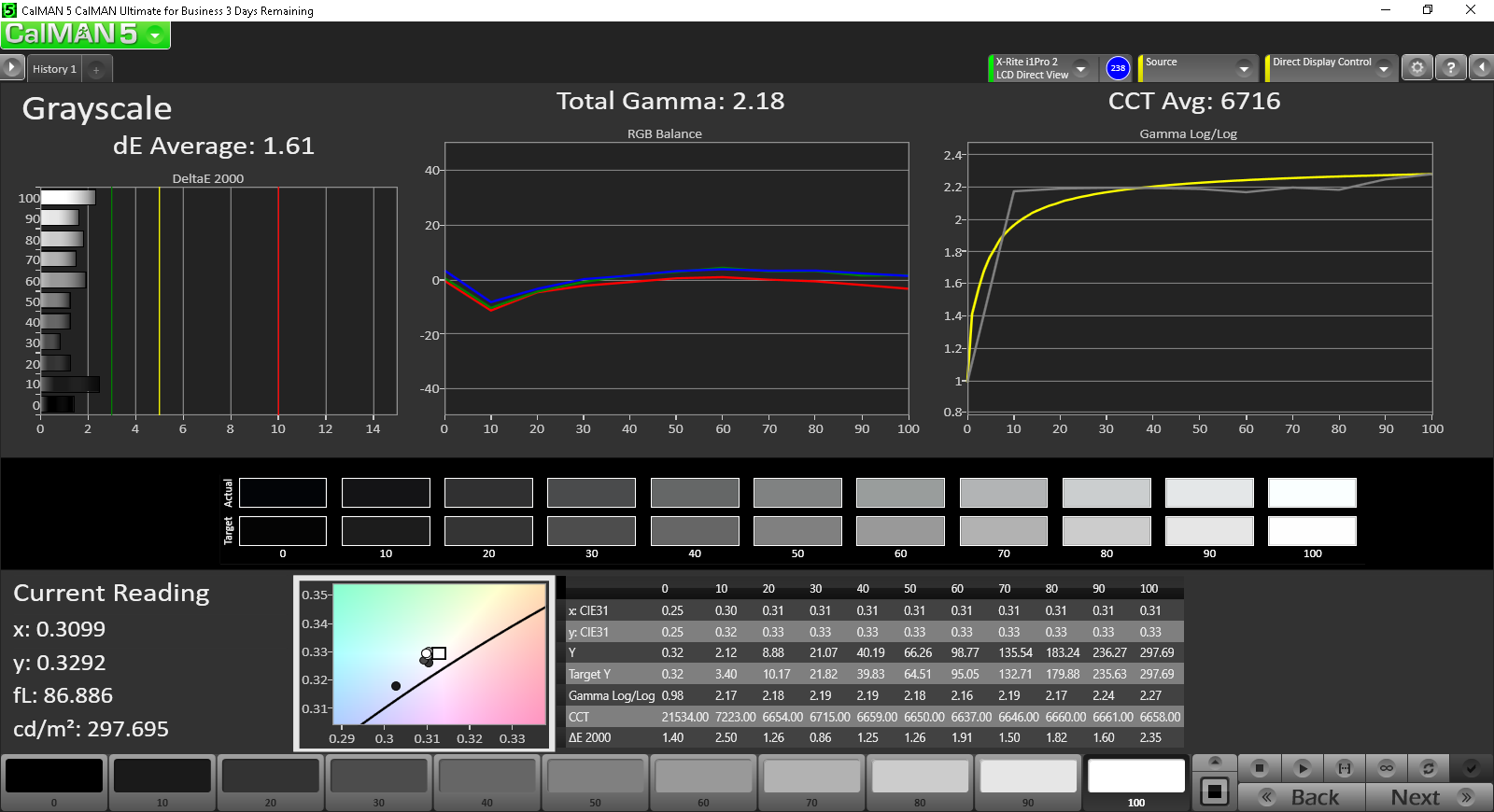 ΔE Greyscale Calman: 1.61 | ∀{0.09-98 Ø5}