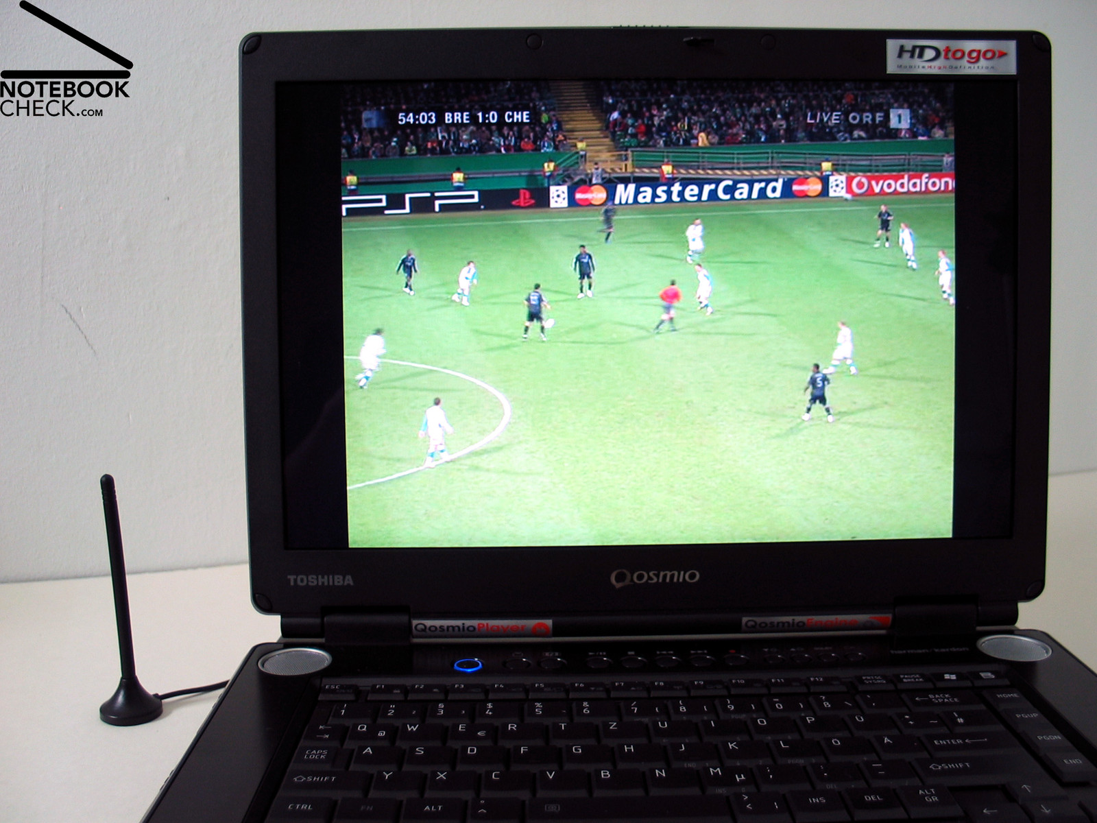 Das Qosmio F30 verfügt auch über einen integrierten analog/dvb-t Tuner mit dem man unter Zuhilfenahme der beigepackten Antenne im Handumdrehen das Gerät in einen Fernseher verwandeln kann. Im Test wurden auf Anhieb (Standort Wien) einige digitale Sender gefunden. Die Bildqualität war ganz passabel.