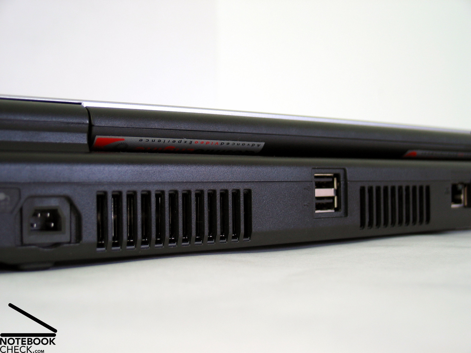 Die rechte Gehäuseseite bietet letztlich noch die Audioports (Kopfhörer, S/PDIF und Mikro), einen AV Eingang und den Modem Anschluss.