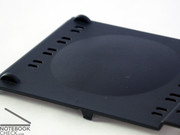Unterhalb der rechten Handballenauflage ist der 7050 mAh fassende Akku angebracht. Da sich ein Standfuß auf dem Akkugehäuse befindet, der Akku selbst aber aus diesem Gehäuse entfernt werden kann, ist auch ein Betrieb ohne Akku durchaus möglich. (siehe Bildleiste rechts)