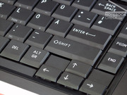 Die einzelnen Tasten sind für meinen Geschmack etwas kantig ausgefallen, welches man beim Schreiben deutlich spürt. Außerdem sind einige Tasten (Tab, Leer und Enter) ziemlich klein geraten, was den einen oder anderen Fehlgriff verursacht.