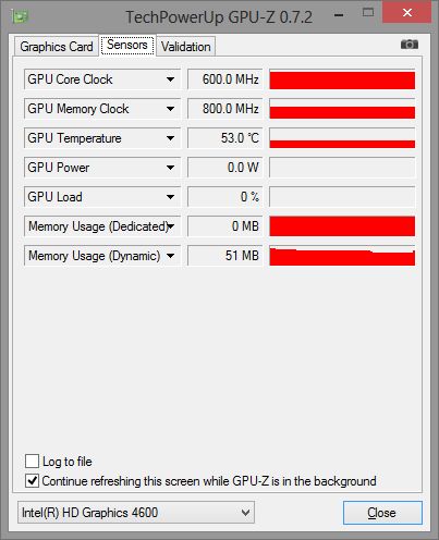Anders als beim Vorgänger X870 setzt Toshiba im Qosmio X70-A-11R auf NVIDIAs Optimus-Technik. Dabei wird die alltägliche Grafikbeschleunigung von der im SoC integrierten Intel HD Graphics 4600 übernommen. Ihre Taktspanne liegt eigentlich zwischen 400 und 1.150 MHz. Das im Testgerät verbaute Exemplar läuft jedoch konstant mit 600 MHz (laut GPU-Z). Warum Toshiba es der GPU nicht gestattet, ihren Basistakt abzusenken, um Energie zu sparen, ist uns schleierhaft.