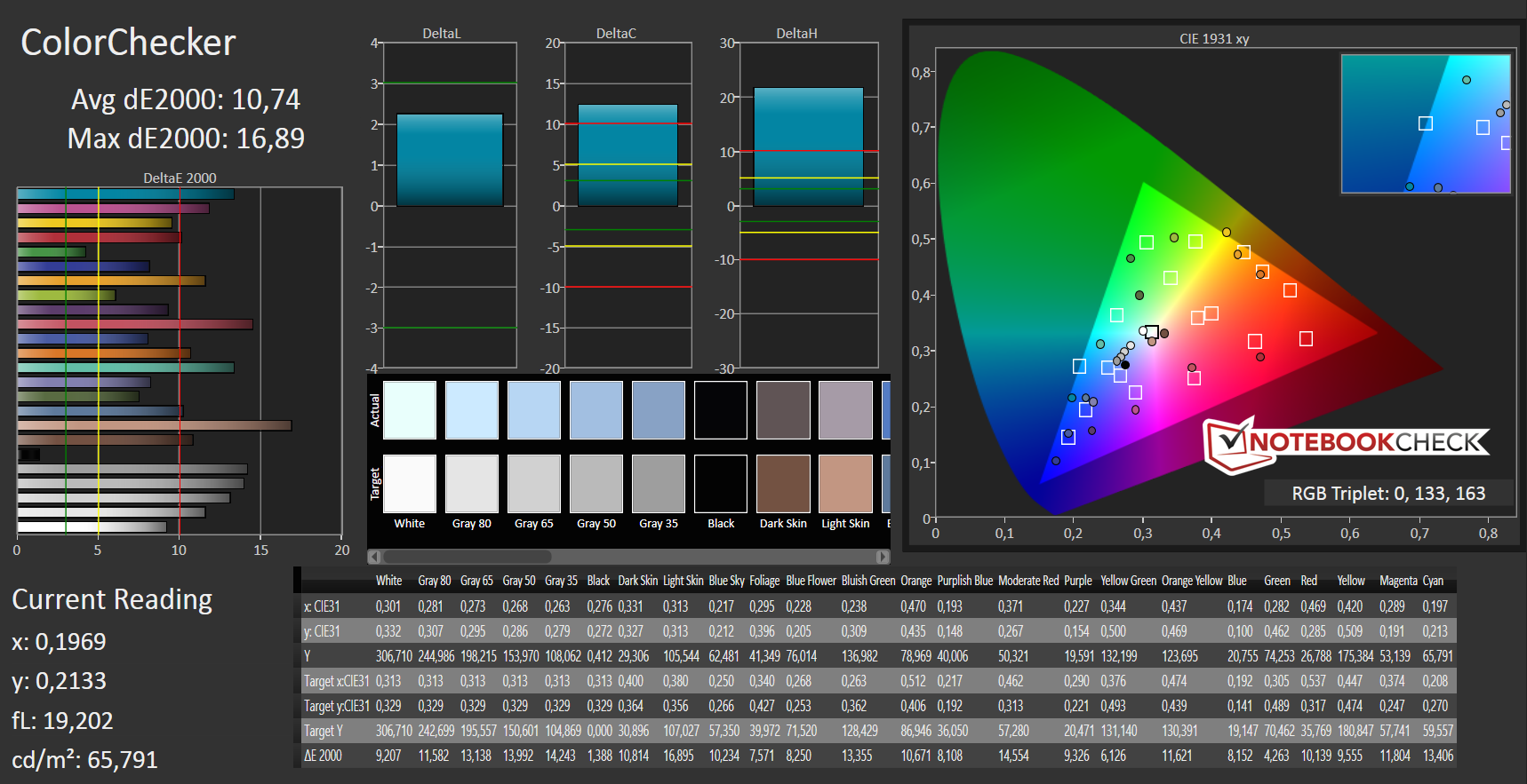 ΔE ColorChecker Calman: 10.74 | ∀{0.5-29.43 Ø4.78}