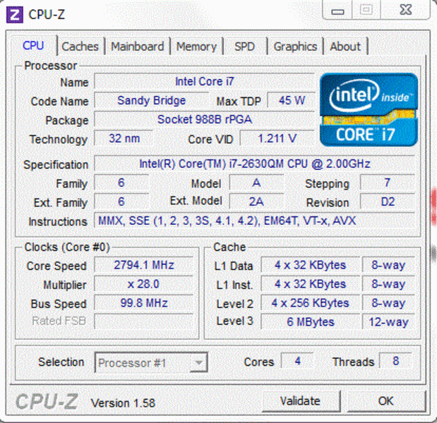 Obwohl das Herstellungsverfahren mit 32 nm dem aktuellen Stand der Technik entspricht, ist der Core i7-2630QM nicht gerade sparsam. 45 Watt TDP sind für einen mobilen Prozessor relativ viel. Diesen Nachteil macht Intel mit einem integrierten Grafikchip (HD Graphics 3000) beinahe wieder wett. Zukunftssicherheit wird beim Qosmio X770 jedenfalls groß geschrieben: Die Sandy-Bridge-CPUs dürften so schnell nicht an ihr Limit gelangen.