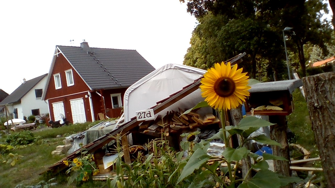 Outdoor ist mit der spiegelnden Oberfläche keine Paradedisziplin des C50D. Die geringe Helligkeit reicht nicht zum Aufhellen des TFTs (Akkubetrieb ebenfalls 227 cd/m² Mitte). Seitliche Einblicke waren bei Sonnenschein fast unmöglich. Im Schatten (Bild 1) und bei frontaler Benutzung sehen wir ein erkennbares Display. Die Suche nach einer sichtbaren Einstellung ohne Spiegelung nervt aber.