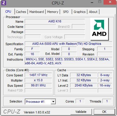 AMDs Quad-Core-SoC A4-5000 (1,5 GHz, kein Turbo) alias Kabini beerbt die alten Bobcat Modelle (z. B. E-350, E2-1800). Der A4-5000 ist bereits das Topmodell, denn die E-Serien APUs E1-2100 bis E2-3000 (zwei Kerne) sind Schwestern gleicher Jaguar Architektur.