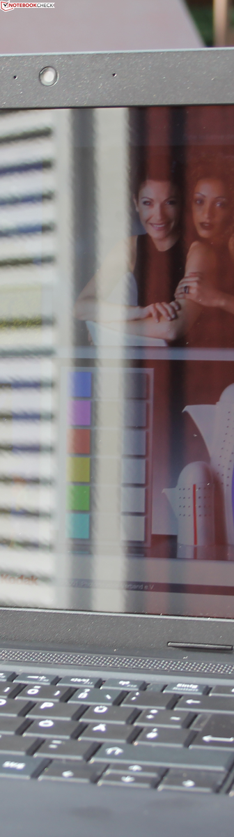 Die Auflösung von 1.366 x 768 Pixeln ist typisch für 15,6-Zoller dieser Preisklasse. Sie ergibt eine nur grobe Pixeldichte von 100 dpi (Pixel deutlich erkennbar). Das TN-Panel wurde nicht entspiegelt und ist mit 227 cd/m² in der Mitte auch nicht außerordentlich hell. Die Konkurrenten in gleicher Preislage haben aber auch nicht mehr Pixel auf dem Kasten (spiegelnd, HD-Auflösung).