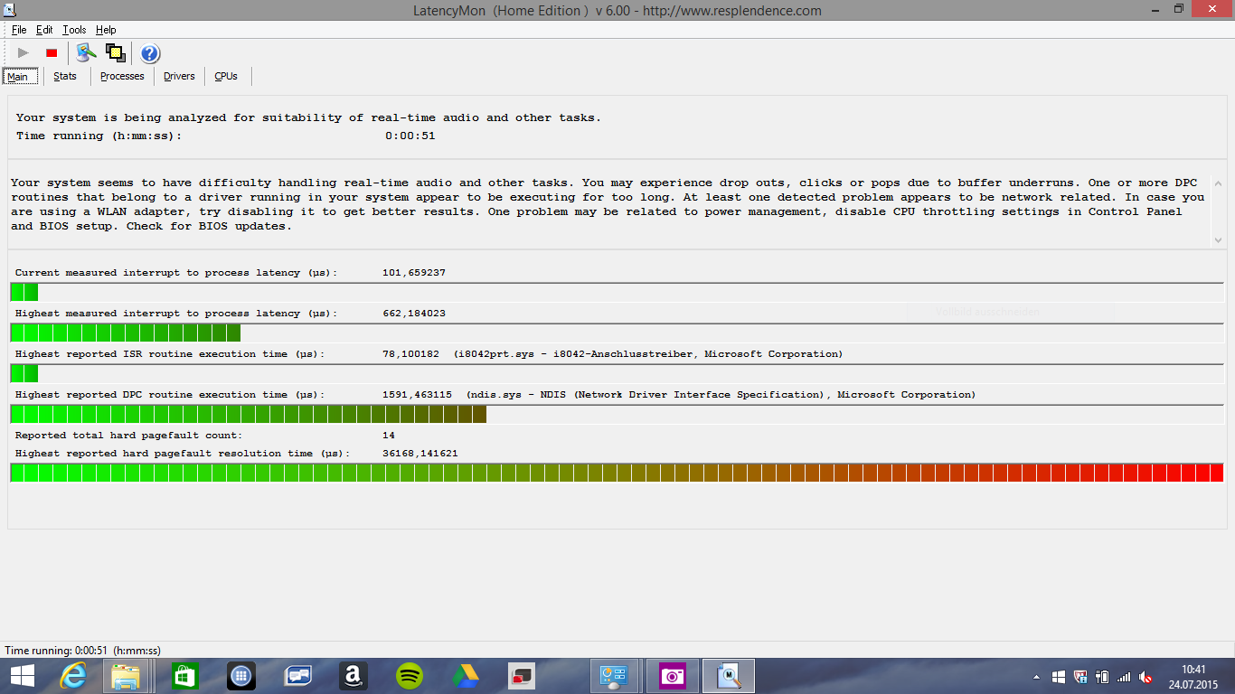 Um die Netzwerkverbindung kümmern sich zwei Module von Realtek. Der RTL8723BE Wireless LAN 802.11n setzt nicht auf Wireless-AC, unterstützt aber Bluetooth 4.0. Stabil war die Verbindung, allerdings nicht reichweitenstark. Den 45-Meter-Mespunkt des individuellen Settings des Autors erreicht der 15-Zoller bei weitem nicht. Bei den 15 Metern im Freiland außerhalb des Gebäudes zeigt Windows eine Signalstärke von 4/5 Balken an. Webseiten werden ebenso schnell aufgerufen, wie direkt neben dem Router im Arbeitszimmer. Der RTL8101 (10/100MBit) unterstützt kein Gigabit-LAN, was heute im Kabelnetzwerk dem Standard entspricht - eine schwache Leistung.