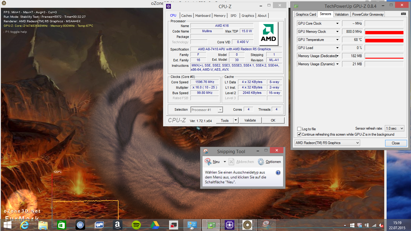 Das Testgerät ist mit der brandneuen AMD A-Series A8-7410 (Carrizo-L) bestückt. Das Topmodell in 28-Nanometer gehört zu AMDs Entry-Segment. Es soll gegen Intels Pentium (Haswell, Bay Trail M) oder Core i3 Prozessoren angesetzt werden. Hier spielt wie immer die Radeon R5 (IGP) eine Rolle, kann sie die HD Graphics in die Tasche stecken? Carrizo-L haben wir in einem separaten Artikel ausführlich unter die Lupe genommen.