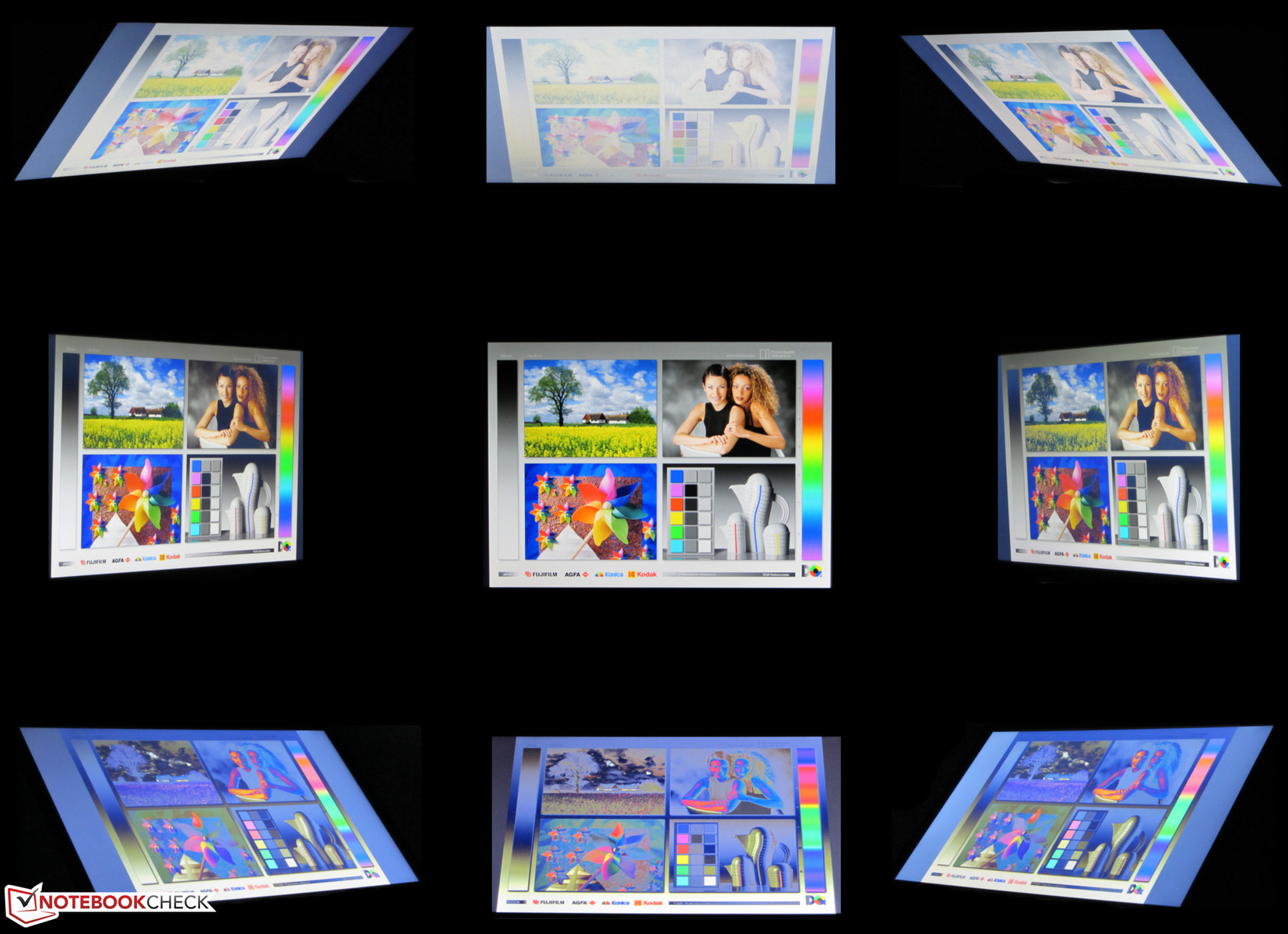 Keine Überraschungen hält die Blickwinkelstabilität bereit. Sie entspricht dem, was wir bei den meisten Notebooks vorfinden. In horizontaler Richtung ist der Winkel großzügig bemessen. Der Bildinhalt kann auch noch von der Seite abgelesen werden, allerdings dunkelt das Bild mit zunehmendem Winkel ab. In vertikaler Richtung besteht nicht viel Spielraum. Hier bricht das Bild schnell ein.