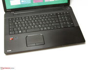 Gehäuseform, Optik und Material sind beim Satellite C70D und beim C50D ebenfalls gleich. Natürlich ist das C70D größer. Der Rechner besteht komplett aus Kunststoff. Das hat er mit dem F75A und dem G700 gemeinsam. Alle Oberflächen des Satellite sind in einem matten Schwarz gehalten. Die Handballenablage und die Deckelrückseite sind zusätzlich mit Rillen versehen.