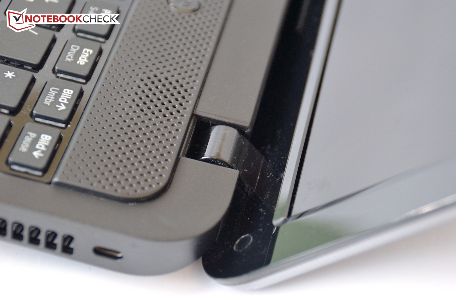 Die Verarbeitung ist ansehnlich, die Stabilität jedoch etwas durchwachsen. Die Handballenauflage widersteht punktuellem Druck sehr gut. Über dem optischen Laufwerk und in der Mitte der Tastatur lässt sich das Gehäuse etwas eindellen. Mittig der Lautsprecherleiste kommt zur leichten Nachgiebigkeit des Materials noch ein unangenehmes Knarzen hinzu.