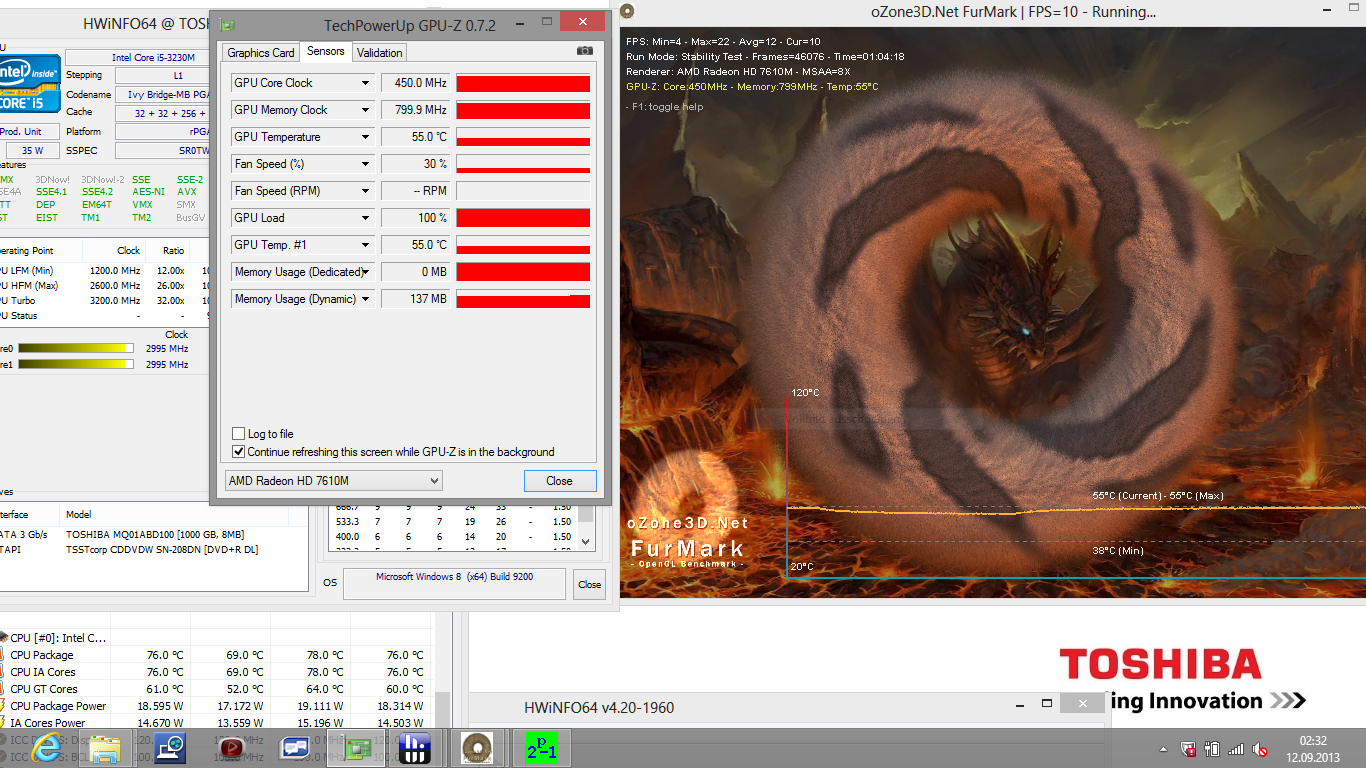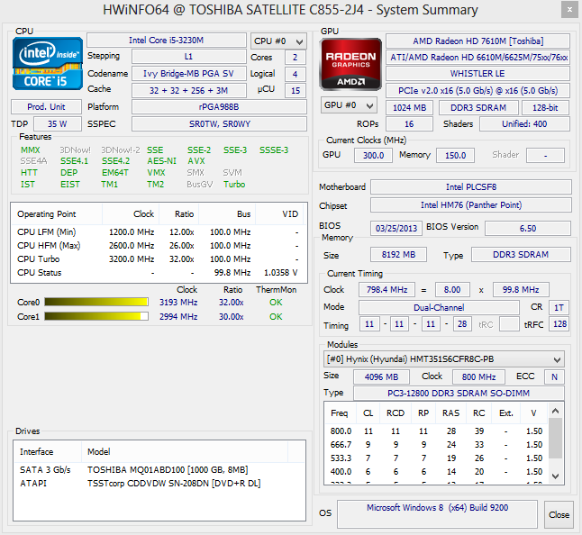 In unserem Testgerät befindet sich der Intel Core i5 3230M zusammen mit der AMD Radeon HD 7610M als dedizierte Grafikkarte mit 1 GB eigenem Speicher. Der Arbeitsspeicher beläuft sich auf großzügige 8 GB und die Festplatte hat eine Kapazität von einem Terabyte.