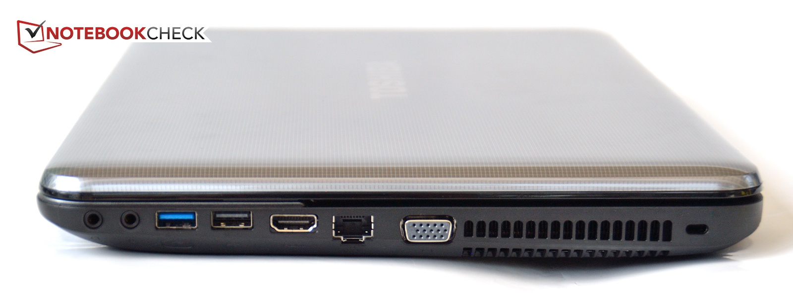 Neben dem Luftauslass ist VGA, Ethernet und HDMI zu finden. Ein weiterer USB-2.0-Anschluss und ein einziger USB-3.0-Anschluss sind ebenfalls rechts vorne positioniert, zusammen mit der Kopfhörer- und der Mikrofon-Buchse. Allerdings ist eine einzige USB-3.0-Schnittstelle heute kaum noch zeitgemäß.