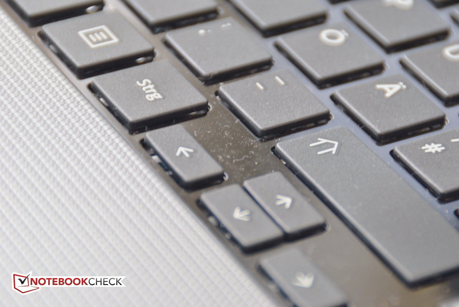 Die flachen Tasten haben nur einen sehr kurzen Hub und verfügen über keinen klaren Anschlag. Zusammen mit einem sehr weichen Druckpunkt erhält man kaum ein Feedback, ob der Tastendruck erkannt wurde. Aus Sicht des Autors ist die Tastatureinheit damit für Vielschreiber wenig geeignet.