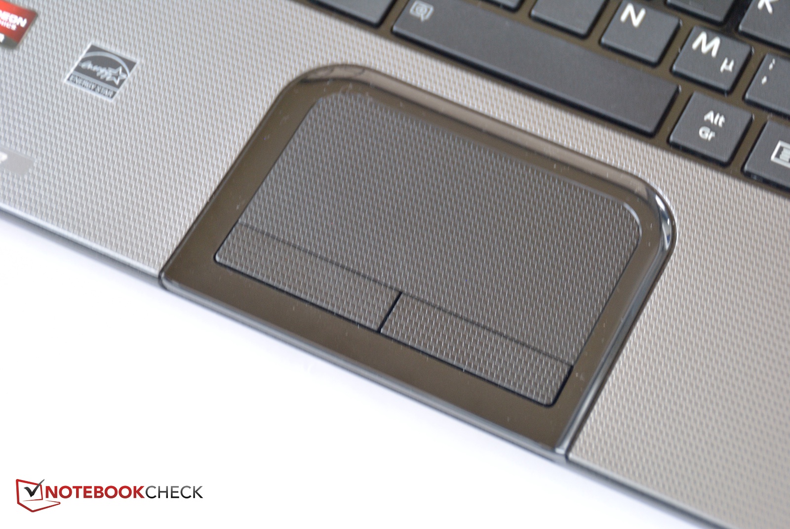 Die Oberflächen des Touchpads und der Mausersatztasten sind strukturiert. Dadurch ergeben sich angenehme Gleiteigenschaften. Eingefasst ist das Touchpad in einen Rahmen aus hochglänzendem Kunststoff, der sehr anfällig für Staub und Fingerabdrücke ist.