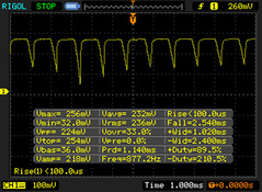 Toshiba hat das Click 10 mit einem 10,1-Zoll-Touchscreen-Display bestückt, das eine native Auflösung von 1.920 x 1.200 Bildpunkten (16:10-Format) besitzt. Helligkeit (287,8 cd/m²) und Kontrast (716:1) des Bildschirms gehen in Ordnung. Die Werte dürften aber durchaus höher ausfallen. Schließlich hat man es hier nach Entfernung der Tastatur mit einem Tablet zu tun. Die Helligkeit des Panels wird per Pulsweitenmodulation (PWM) geregelt. Bis zu einer Helligkeitsstufe von 75 Prozent können wir ein Flimmern des Bildes messen. Allerdings ist die Frequenz mit 877 MHz so hoch, das es vom menschlichen Auge nicht wahrgenommen werden kann.