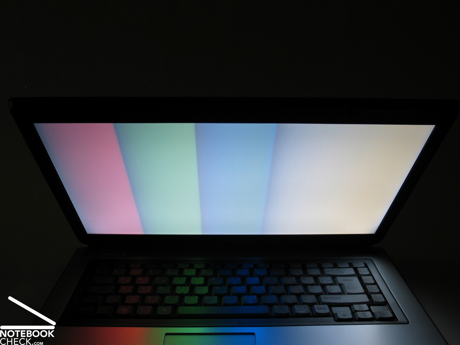 Das Display zeigte erfreulicherweise eine matte und spiegelfreie Displayoberfläche wie sie ansonsten beinahe nur bei Business Geräten zu haben ist. Auch die Helligkeit des verbauten Panels fiel im Test ganz passabel aus. Schwachpunkt des Bildschirmes ist die nur sehr eingeschränkte Blickwinkelstabilität die unter Umständen beim mobilen Einsatz des Notebooks Probleme bereiten kann.