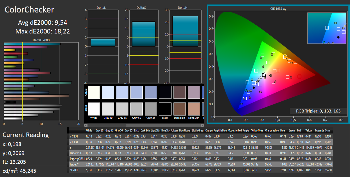 ΔE ColorChecker Calman: 9.54 | ∀{0.5-29.43 Ø4.78}