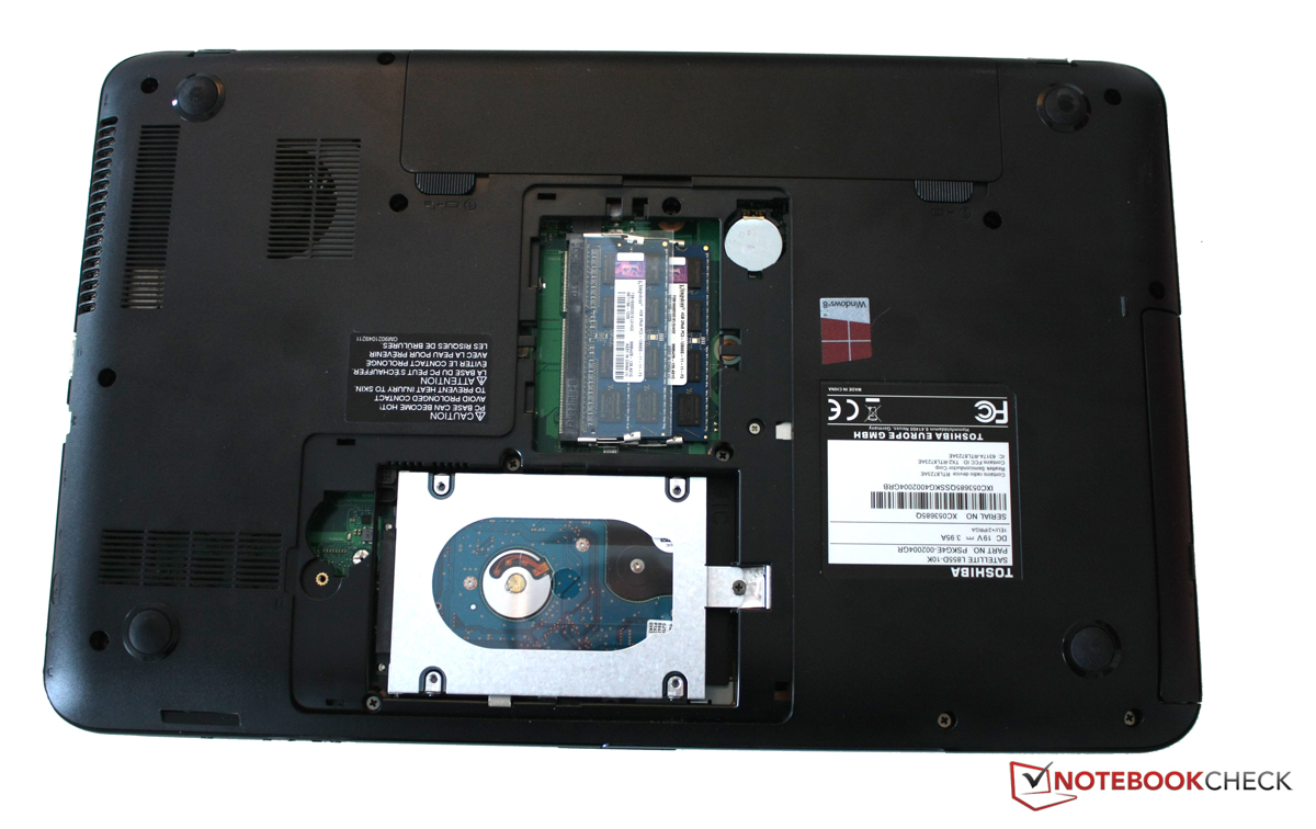 Über eine Klappe an der Unterseite lässt sich durch das Lösen nur einer Schraube schnell an Arbeitsspeicher und Festplatte kommen. Vorbildlich: Auch die Batterie, die das BIOS im ausgeschalteten Zustand mit Energie versorgt, kann leicht gewechselt werden, das spart das aufwändige Einsenden an den Support. Den Lüfter darf man zwar durch eine Gitter betrachten, man kommt aber selbst nicht heran, um ihn etwa von Staub zu befreien.