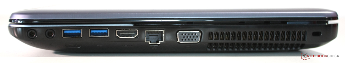 Immerhin 799 Euro ruft Toshiba für sein Satellite L855D auf, da sollte schon ein gewisses Mindestmaß an Anschlüssen vorhanden sein. Kurz gesagt: Das Gerät liegt hier innerhalb der Norm anderer Vergleichsgeräte, besondere Highlights sollte man jedoch nicht erwarten. Zwei USB 3.0-Anschlüsse gehören mittlerweile ebenso zum guten Ton, wie ein HDMI-Ausgang. Bei den Geräten der L855-Serie, die mit Blu-Ray-Laufwerk ausgestattet sind, wird auch die 3D-Ausgabe über den HDMI-Port unterstützt, so dass man das Notebook als 3D-Blu-Ray-Zuspieler für den Fernseher verwenden kann. Bei unserem Notebook ist allerdings als Laufwerk auf der linken Seite nur ein DVD-Brenner verbaut.