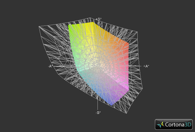 Schwarzwert (0,42 cd/m²) und Kontrast (548:1) des Displays liegen durchaus in einem guten Bereich. Noch bessere Werte liefert der Bildschirm des Packard Bell Notebooks (0,36 cd/m², 656:1). Weit abgeschlagen hinter der Konkurrenz liegt der Sony Rechner (0,92 cd/m², 268:1). Den sRGB- und den AdobeRGB-Farbraum kann das Display des L875D nicht abbilden.